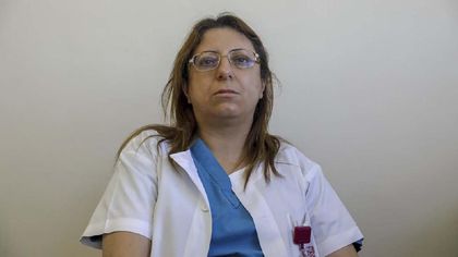 Khitam Hussein menjalani hari-hari sibuk dalam perang lawan Corona. (Photo by Ahmad GHARABLI / AFP)"Kami mengizinkan istrinya yang juga sakit, berbicara dengan sang suami, untuk mengucapkan selamat tinggal. Tak lama kemudian, sang suami meninggal."
