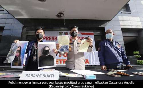 Polisi menggelar jumpa pers soal kasus prostitusi artis yang melibatkan Cassandra Angelie (Kapanlagi.com/Akrom Sukarya)