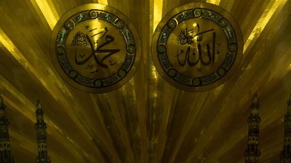 Foto: ANTARA FOTO/Rosa PanggabeanLambang Allah SWT dan Nabi Muhammad SAW yang berada di salah satu kios milik masjid, Senin (29/5). Pendanaan masjid biasanya didapatkan dari sumbangan umat muslim yang datang dan beribadah di masjid tersebut. ANTARA FOTO/Rosa Panggabean/17.Allah juga menunjukkan Musa pada mukjizatnya yang dapat mengubah tongkat menjadi ular serta dada yang bercahaya.