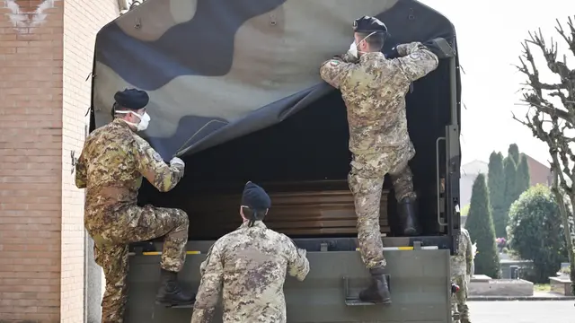 Tentara bersiap menurunkan peti mati berisi jasad korban virus corona COVID-19 dari Bergamo di Ferrara, Italia, Sabtu (21/3/2020). Hingga saat ini, sebanyak 4.825 orang dilaporkan meninggal akibat COVID-19 di Italia. (Massimo Paolone/LaPresse via AP)Garda terdepan keamanan sebuah negara adalah tentara. Profesi yang satu ini erat dengan kata bahaya. Mereka harus siap ditugaskan di mana saja, termasuk daerah konflik sekalipun. Harus rela meninggalkan keluarga tercinta dalam waktu cukup lama.