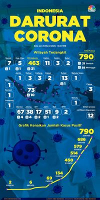 Update Corona RI 25 Maret, 790 Kasus dan Peta Penyebarannya