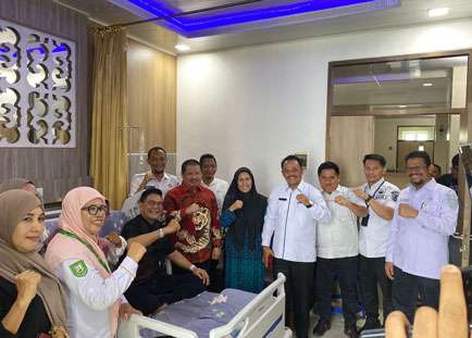 Bupati Bengkalis Ke-14 Amril Mukminin Besuk Kadis Kominfotik Bengkalis di RSUD