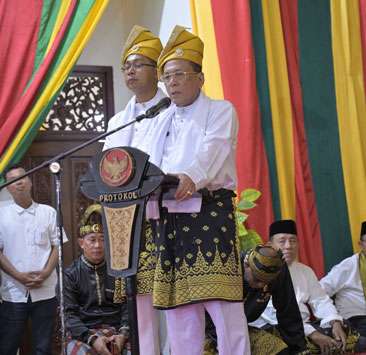 "Upacara tepuk tepung tawar merupakan doa untuk keselamatan dan kesejahteraan bagi masyarakat kita orang Melayu. Kemudian pemasangan tanjak putra kayangan kepada Bupati dan Wakil Bupati Rohil melambangkan kemuliaan dan kehormatan bagi pemakainya serta sebagai simbol kepemimpinan yang bermartabat dan bijaksana. Tanjak putra kayangan ini mengingat kan kita akan pentingnya harkat dan martabat budaya Melayu," kata Datuk Seri Jufrizan.