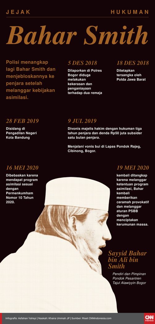 Sebelumnya, Kemenkumham memberi Bahar bin Smith asimilasi dengan membaurkannya dengan masyarakat, pada Sabtu (16/5). Meskipun masa hukuman riilnya sampai 2021. Asimilasi itu bisa dicabut jika ada pelanggaran hukum di periode itu.