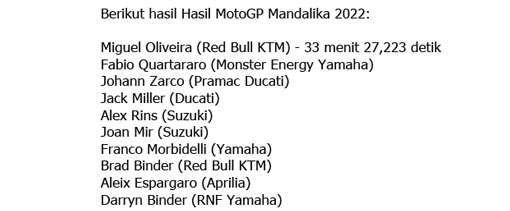 Tak Diduga, Pembalap KTM Miguel Oliveira Juara MotoGP Mandalika